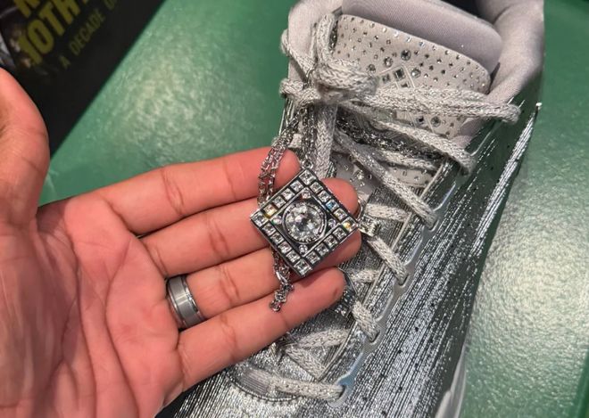 安踏CEO徐陽親臨現場,為湯普森送上一雙閃亮的銀色KT11作為紀念。現場還設有展區,回顧克萊與安踏合作12年來的歷程。